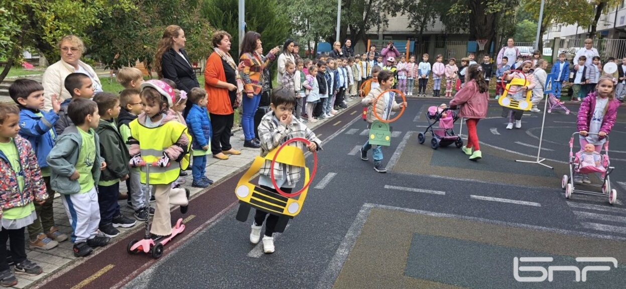 Малчуганите показаха как се преминава безопасно по пешеходна пътека и демонстрираха наученото чрез песни, танци и игри на специалната площадка за обучение.