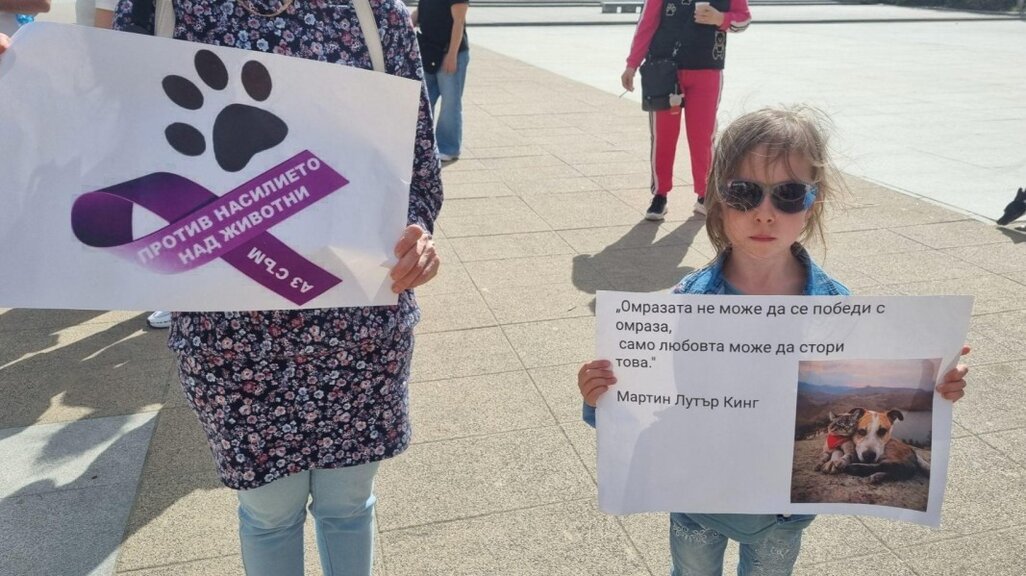 Плакат от протест в защита на животните в София.