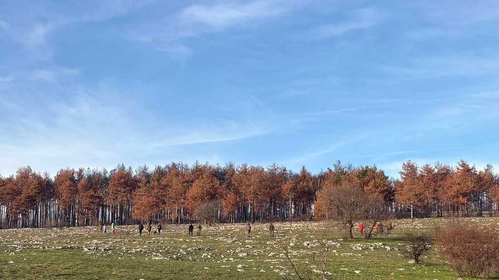 "Тези дървета в момента са опасни от гледна точка на пожароопасност. Ако стане един пожар, това може да стане с много по-голяма сила", поясни пред местните хора инж. Росен Райчев, заместник-изпълнителен директор на Изпълнителната агенция по горите.