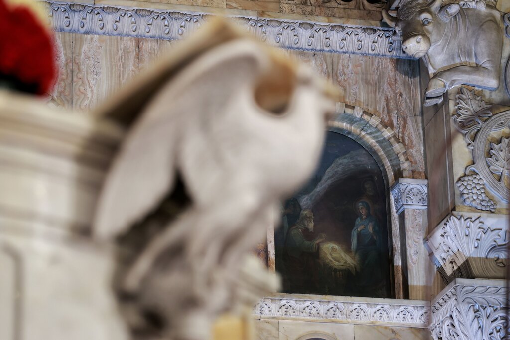 Те обаче не могли да намерят подслон в града и затова Младенецът Иисус се родил в пещерата извън града, където пастири се приютявали със своите животни.