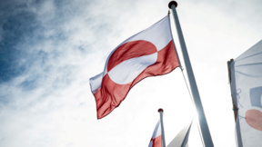 Флагът на Гренландия се развява в столицата Нуук.