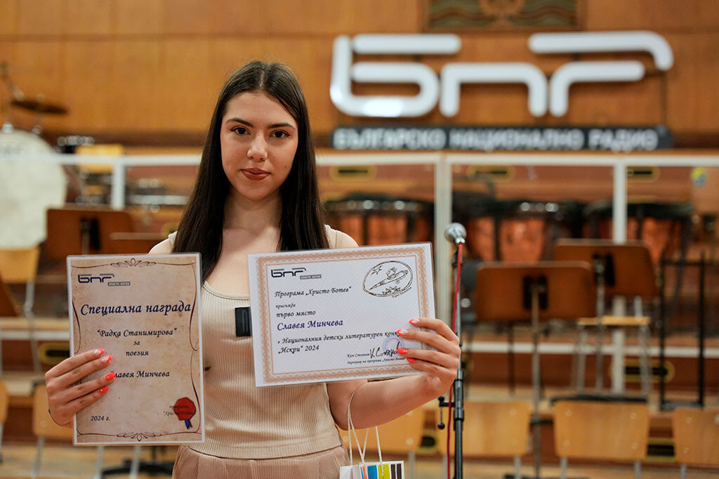 Националният конкурс "Искри" проведе своето 41-во издание. Финалът събра 40 талантливи финалисти за първи път в историята на конкурса, а церемонията се проведе в Първо студио на БНР. Със специалните награди на името на Радка Станимирова за проза си тръгнаха Сава Георгиев за проза и Славея Минчева за поезия, и двамата възпитаници на школа "Касталия" - Варна. Второ място в конкурса споделиха Красен Казаков, София, НГДЕК, и Бояна Бонева, Велико Търново. На трето място в "Искри" бяха отличени Боян Тасев - школа "Касталия" Варна, Радослав Карауланов - школа "Касталия" Варна и Явор Стефанов от Габрово.