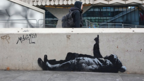 Творбата е върху стена над поредица от гаражи и е била забелязана за първи път в понеделник. Би Би Си обаче съобщи, че идентичен стенопис е видян и в петък пред висока сграда в центъра на Лондон, известна като "Сентър Пойнт" (Centre Point) , но за него няма официално потвърждение, че е на Банкси.