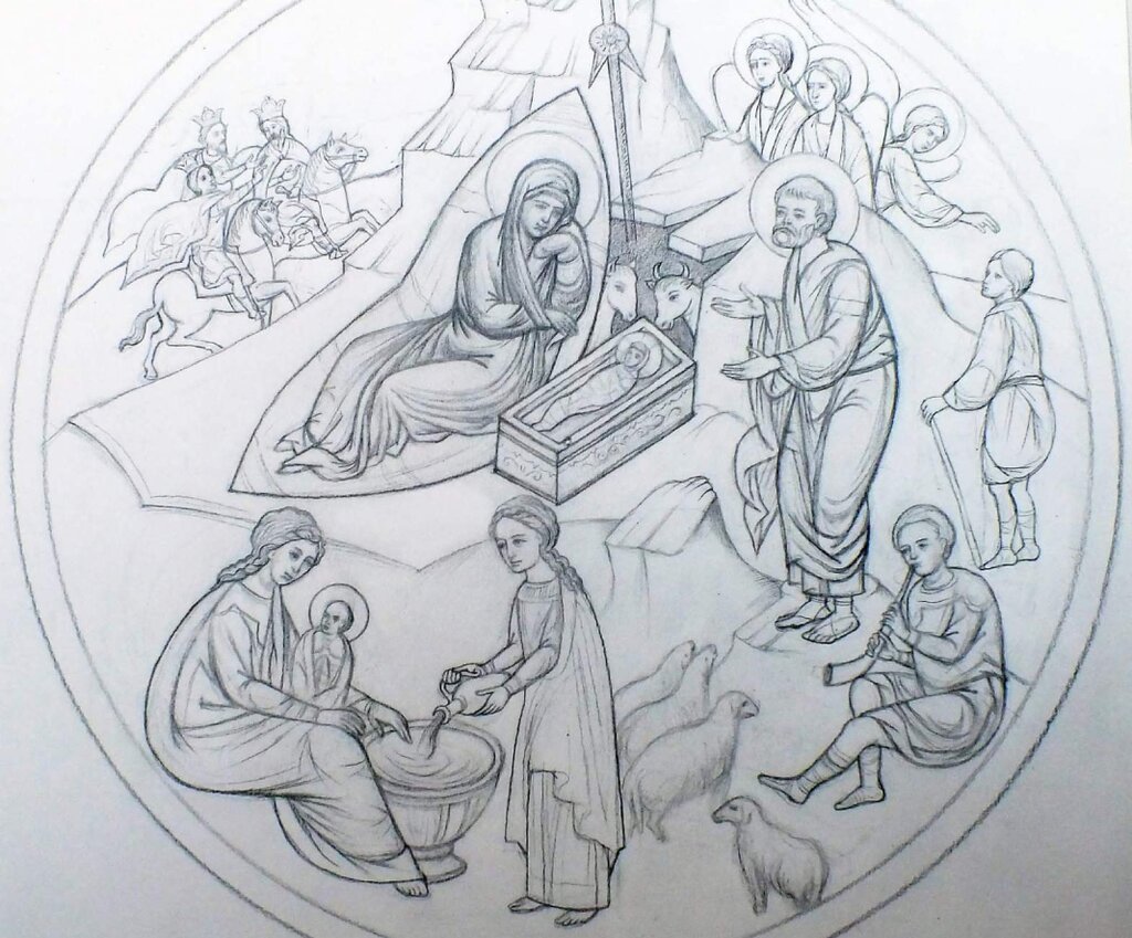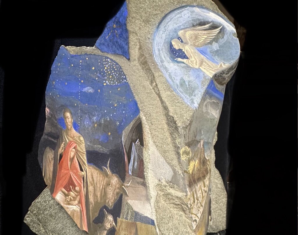 Освен няколко икони, Станимир Желев представя и рисунки на библейски сцени, които се отличават с финес, чувствителност и улавят всеки жест. Живописната творба "Между две епохи / Още едно рождество", създадена през 1995 г. от Андрей Даниел и отличаваща се с игра на сенки и сияния, усещане за празничност и величие, пресъздава сцената на Рождеството по тържествен, но и много човешки начин. Атанас Атанасов пък изработва изящна живопис върху триизмерен камък, чиито фантастични пейзажи подчертават връзката между божественото и земното чрез ренесансов похват.