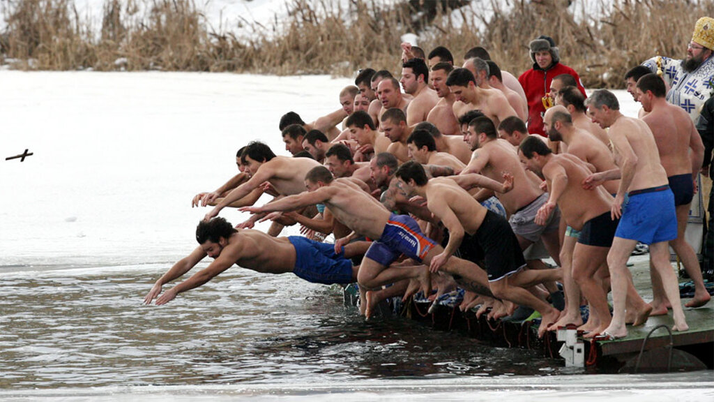 На самия празник в църквите се извършва празнична Божествена литургия и водосвет. След което, по традиция, свещеникът повежда вярващите до близкия водоем и хвърля кръста във водата. Мъжете скачат в ледените води, за да го извадят. Смята се, че този, който успее пръв да стигне до него, ще бъде здрав и щастлив през цялата година.